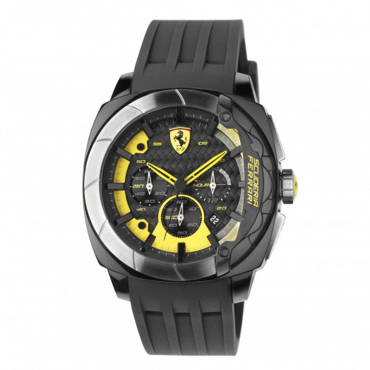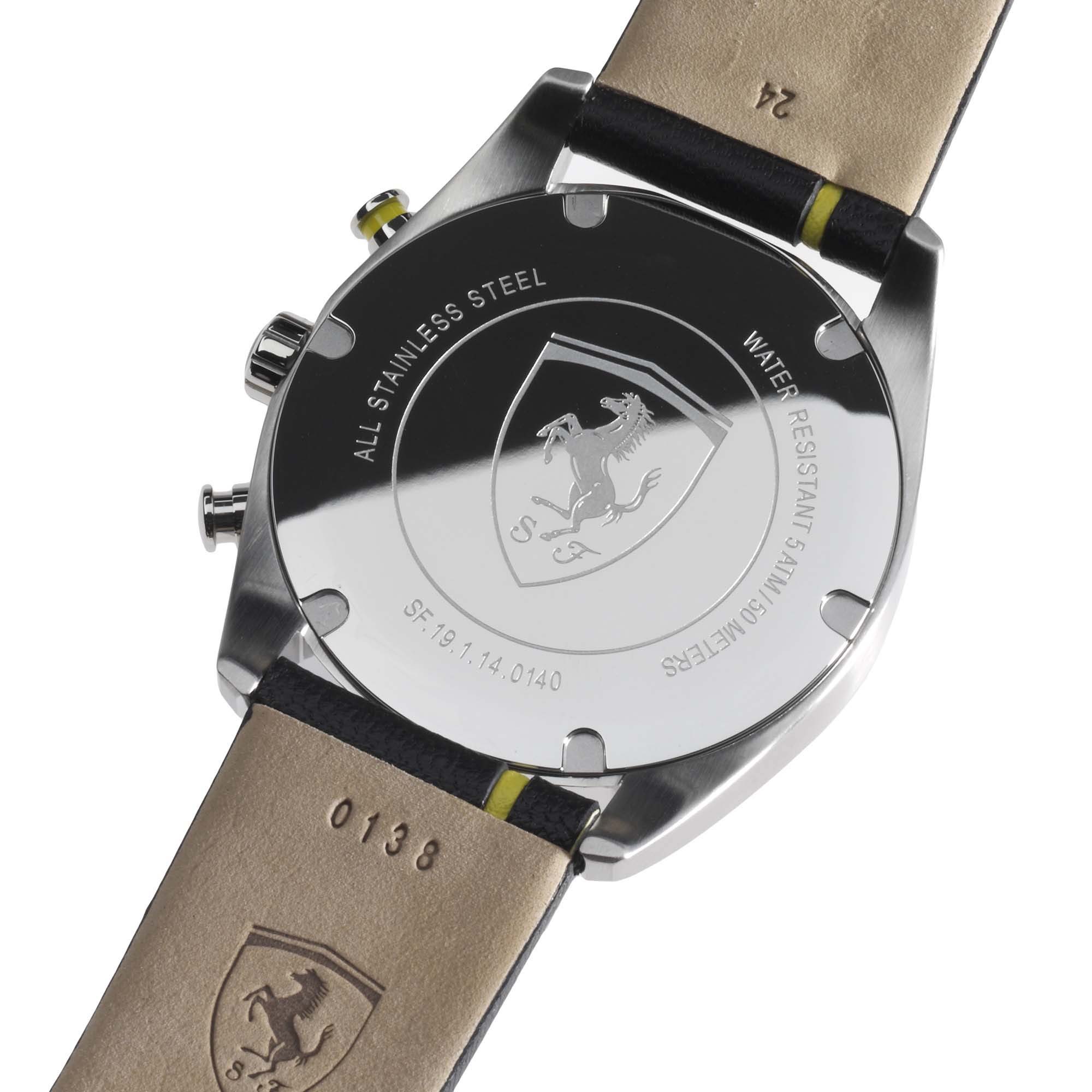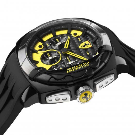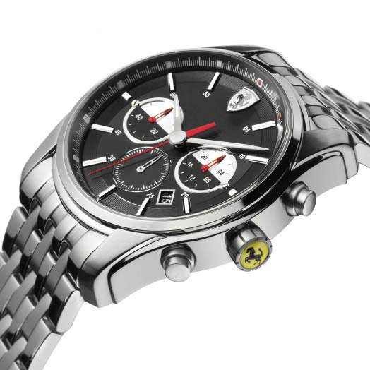 “Scuderia”, Ferrari's most classic watch line, boasts a timeless style with traditional male details, including its 44 mm case.